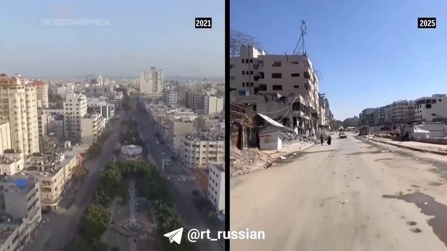 От оживлённых улиц — к руинам: впечатляющее видео, как изменился сектор Газа за время конфликта.