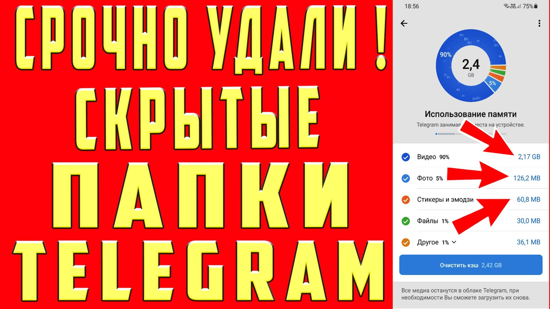 КАК ОЧИСТИТЬ КЭШ в ТЕЛЕГРАММЕ ! ОСВОБОДИЛ 40 ГБ ПАМЯТИ! КАК КЭШ в ТЕЛЕГРАММЕ на АНДРОИДЕ и АЙФОНЕ