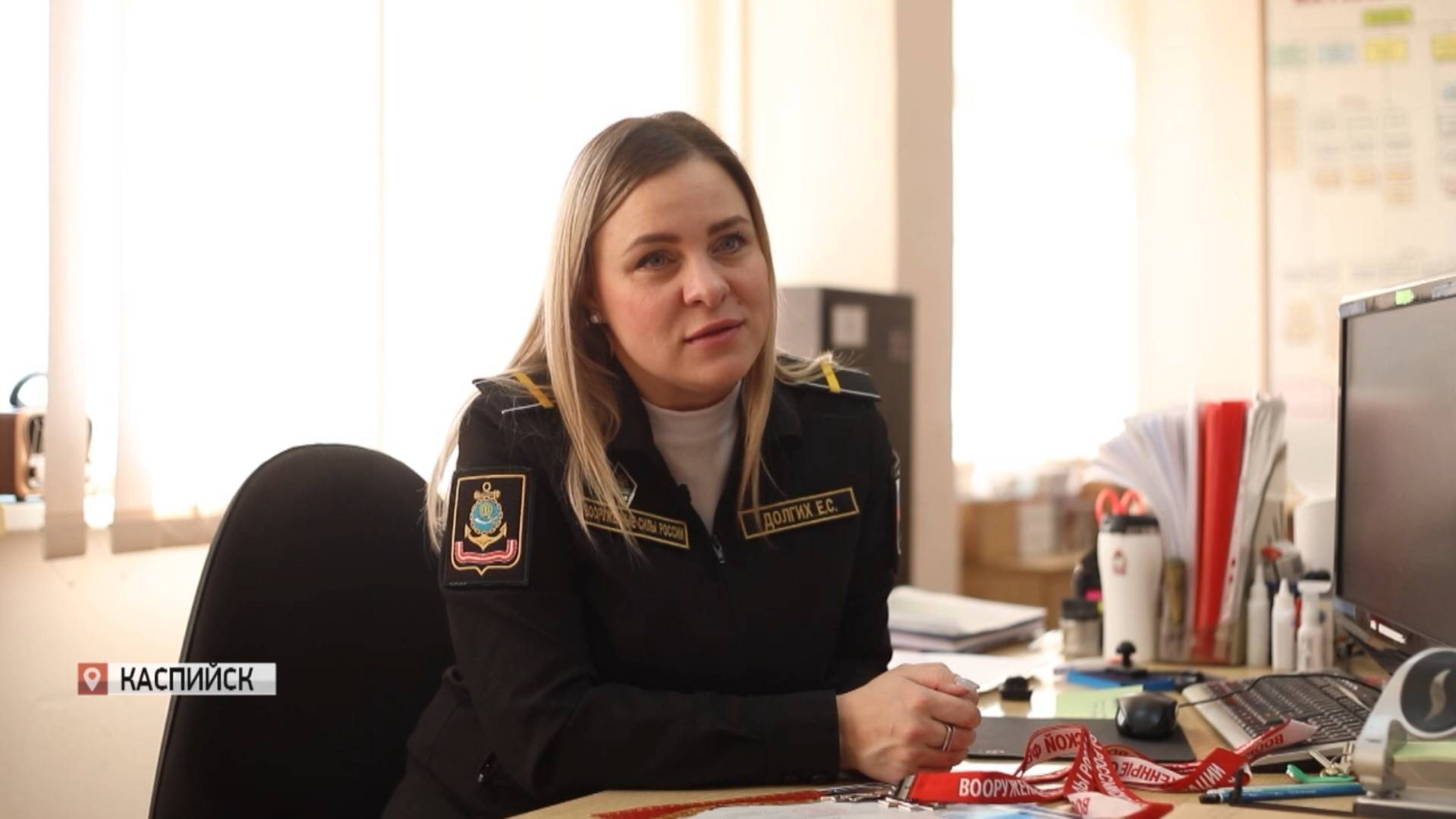 Не по долгу службы, а по зову сердца. ДолгИх Екатерина с детства мечтала об армии, девушка родилась в семье военнослужащих и выбор профессии для нее был очевиден. Служит в Каспийской флотилии, а еще активно занимается спортом, с ранних лет была тяга к плаванию, которая переросла в нечто большее – ряд соревнований, еще столько же побед. Насыщенная спортивная и военная жизнь девушку не утомляет, а напротив мотивирует. Сегодня она также принимает поздравления. Продолжит Гаджимурад Зияудинов.