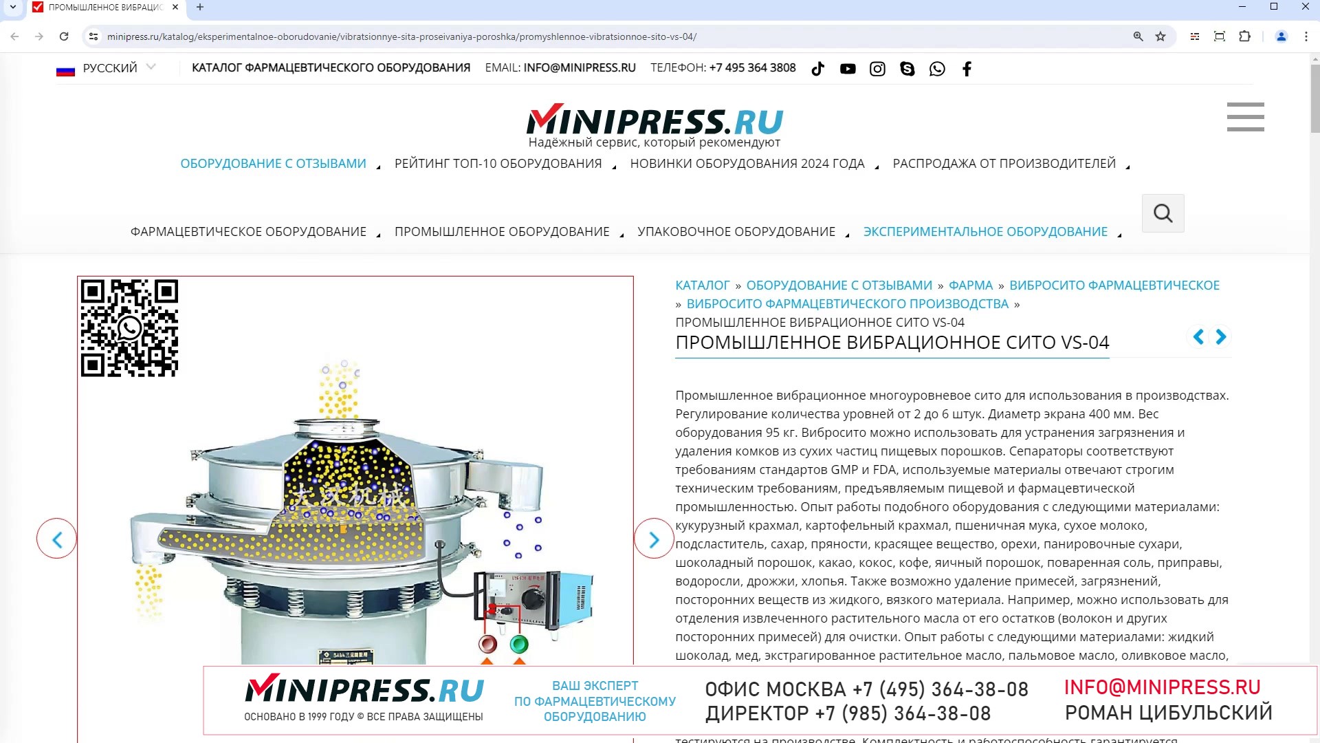 Компания MINIPRESS.RU занимается подбором и поставкой АВТОМАТИЧЕСКИХ УПАКОВОЧНЫХ МАШИН для фасовки таблеток, капсул, драже, гранул, ампул, флаконов и других видов фармацевтической продукции. Оборудование для герметичной, индивидуальной и групповой упаковки в алюминиевую фольгу, фильтр бумагу, полиэтиленовую пленку, нейлон и другие материалы. Компания Романа Цибульского MINIPRESS.RU занимается поставкой большого ассортимента фармацевтического оборудования из Китая, Кореи, Индии, Европы и других стран. Мы выполняем работы по поиску, подбору, закупке, доставке, и таможенной очистке оборудования с доставкой в любой город России и стран СНГ. Основатель и ведущий специалист компании - Роман Цибульский. Компания MINIPRESS.RU (зарегистрированный товарный знак) основана в 2000 году. Онлайн каталог оборудования MINIPRESS.RU ежедневно посещают несколько тысяч человек. Мы развиваем крупные каналы в социальных сетях, посвященные тематике фармацевтического оборудования. Вы можете посмотреть видео ролики об оборудовании, которым мы занимаемся. Фактически у нас самый большой в России многоязычный каталог фармацевтического оборудования с фотографиями, описаниями, и что более важно с ценами и видео демонстрацией оборудования в работе. Подбор оборудования и консультации ведет сам владелец компании - Роман Цибульский. Компания имеет огромный опыт в работе с различным оборудованием, технологиями. Помогаем клиентам выбрать модель фармацевтического оборудования, которое сможет решить поставленную задачу. Наши специалисты помогают рекомендациями в решении проблем по эксплуатации оборудования. Наша компания имеет офис в г.Шанхай и несколько менеджеров, которые помогают в работе с китайскими поставщиками. Мы долго сотрудничаем и дружим с этими специалистами. Китайские поставщики ценят нас как постоянных партнеров. Роман Цибульский Директор компании Минипресс Поставка фармацевтического оборудования в Россию Пишите: info@minipress.ru Gmail: boss.minipress@gmail.com Офис в Москве +7(495)364-38-08 Мобильный +7(985)364-38-08 (WhatsApp) Каталог оборудования https://www.Minipress.ru/katalog/ МИНИПРЕСС.РУ В СОЦИАЛЬНЫХ СЕТЯХ FB https://facebook.com/roman.tsibulsky YOUTUBE https://www.youtube.com/@farmacevticheskoe_oborudovanie INSTAGRAM https://www.instagram.com/farmacevticheskoe_oborudovanie/ #технология #ламинирование #кодер #флакон #поставки #переговоры #этикетка #сито #печать #этикетировщик