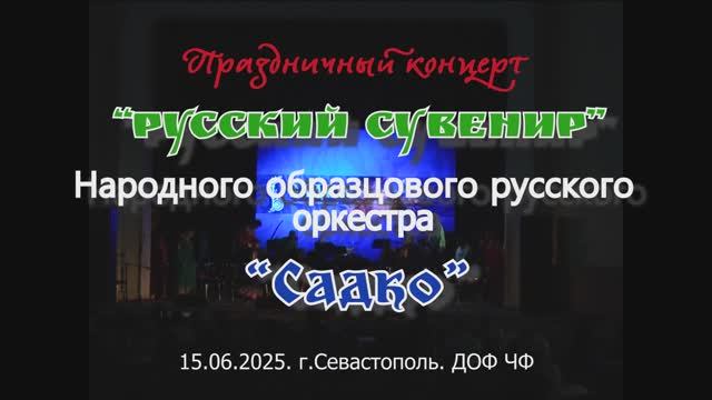 Праздничный концерт "РУССКИЙ СУВЕНИР" ко Дню России и Дню города-героя Севастополя. Образцовый Народный русский оркестр "САДКО" Дворца детского и юношеского творчества г.Севастополя. Дом офицеров ЧФ. 15.06.2025. Солисты: заслуженный деятель искусств Севастополя, лауреат Международного конкурса им.С.Прокофьева – МИХАИЛ ИГНАТОВ (баритон); лауреат Международных конкурсов оперных певцов – ЖАННА СМОЛЕГО (меццо-сопрано); лауреат Международных конкурсов - АЛЕКСАНДР ОЖИМКОВ (народный вокал); лауреат Международного конкурса современной эстрадной и народной песни - РАФАИЛ КУНДРЮКОВ; солистки ансамбля народной песни «КАЛИНКА» ДДЮТ, лауреаты Международных конкурсов - АЛИКА КОССЕК, МАРИЯ ОСОКИНА, ЗЛАТА АКСАМИТ, НАДЕЖДА СОЛДАТЕНКО, АЛЕКСАНДРА ТЮТЮШОВА и ЛЮБАВА ДЫМЕРЕЦ; лауреат Международных конкурсов – АНТОН ФЁДОРОВ (баян); лауреат Международных конкурсов – ГАЛИНА ШИРЯЕВА и учащиеся музыкально-оркестровой студии оркестра «САДКО» - ЛИНА КУЗЬМИЩЕВА и АЛЕКСАНДР МАРТЬЯНОВ (балалайка). Художественный руководитель и дирижёр: заслуженный работник образования города Севастополя, заслуженный работник культуры Украины - Людмила Королёва.