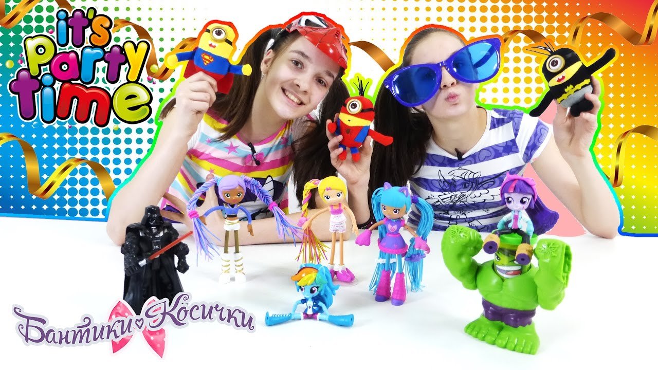 У Сони и Полины жизнь бьет ключом – Бэтти-спагетти пригласила их на пижамную вечеринку, Люси – на карнавальную вечеринку, а Зоя – на дискотеку, и непременно нужно побывать везде! У Бэтти собрались ее лучшие подружки из Эквестрии – Эпплджек, Пинки Пай, Радуга Дэш, Рарити и Искорка. Попрыгали на кроватях, перекусили сладким и пора дальше – на карнавал! Тут и миньоны в костюмах супергероев, и даже Дарт Вейдер, которым оказалась Свинка Пеппа! Ой, как страшно – вот аниматроники из “5 Nights at Freddy’s”! Спокойно, это же переодетый Щенячий Патруль! А вот и Крипер… но костюм ли это? Некогда, пора к Зое! Халк здесь уже зажигает! Приходи снова на канал для девочек Бантики Косички, у нас всегда весело! Еще больше видео на канале Бантики-Косички: https://www.youtube.com/channel/UCZJi3695pl6tfkAHp4BLMDA/?sub_confirmation=1 Детские видео на канале СМЕШАРИКИ live: https://www.youtube.com/channel/UCy15c4beE539pcPFt4-UrHg/?sub_confirmation=1 Новые видео для девочек на канале Страна Девчонок: https://www.youtube.com/channel/UCCe6oRAVWZFztZJMAujRu7A/?sub_confirmation=1 Заходи на наш сайт: https://www.4screens.ru Ищи нас в социальных сетях! ВКонтакте: https://vk.com/club132423271 Фейсбук: https://www.facebook.com/4ScreensShow Твиттер: https://twitter.com/4Screens_Studio Инстаграм: https://www.instagram.com/4screensstudio
