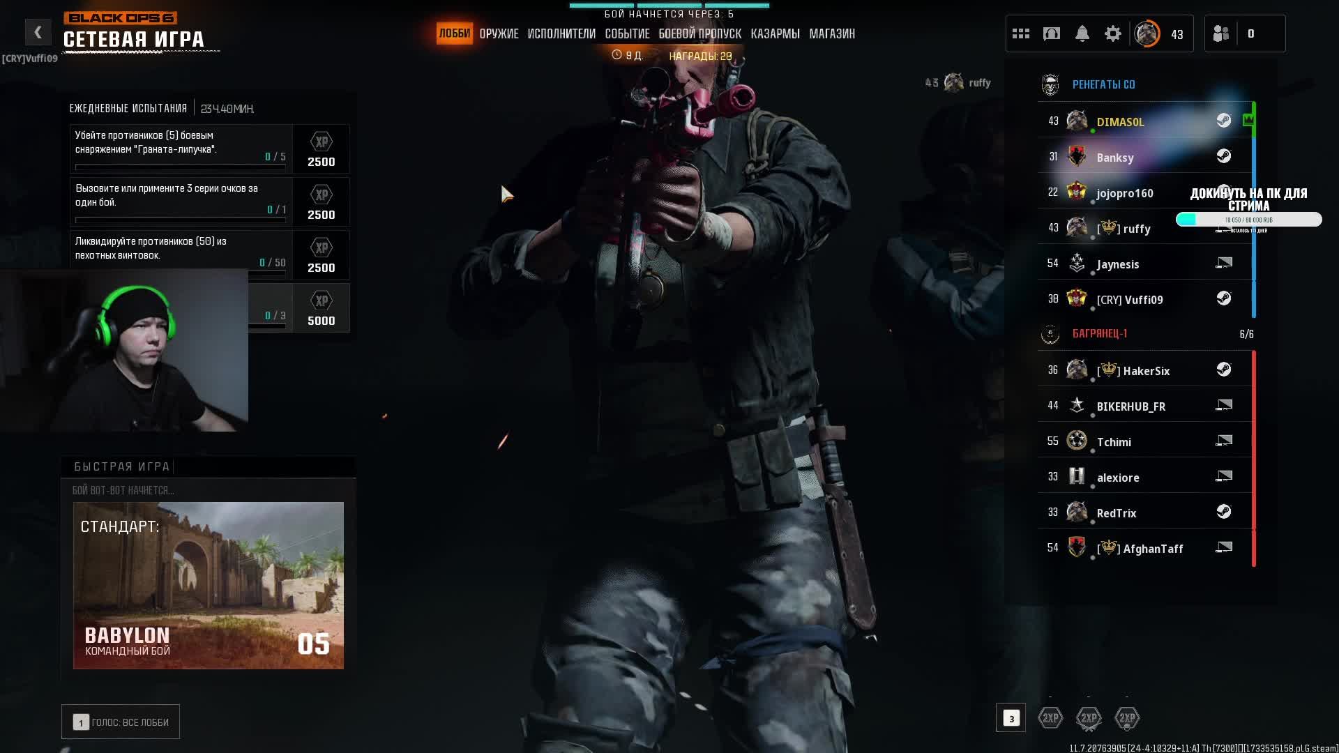 ► Лучшая поддержка, это Вы, Ваши лайки и Ваши подписки Поддержи стримера: https://www.donationalerts.com/r/dimasol ► Ссылки: https://www.twitch.tv/dimas0l https://live.vkplay.ru/dimasol https://rutube.ru/channel/32686465/ https://www.youtube.com/@DIMAS0L ►Мой компьютер CPU - Ryzen 9 5900x GPU - RTX 4080 SUPER RAM - 2x32 Gb Сam - Nikon D5000