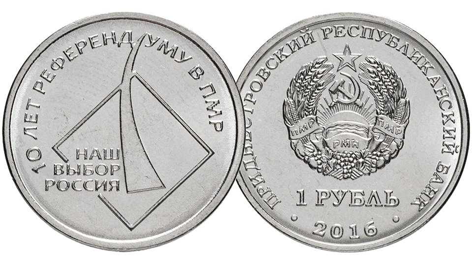 Монета 1 рубль Приднестровья 10 лет референдума ПМР.