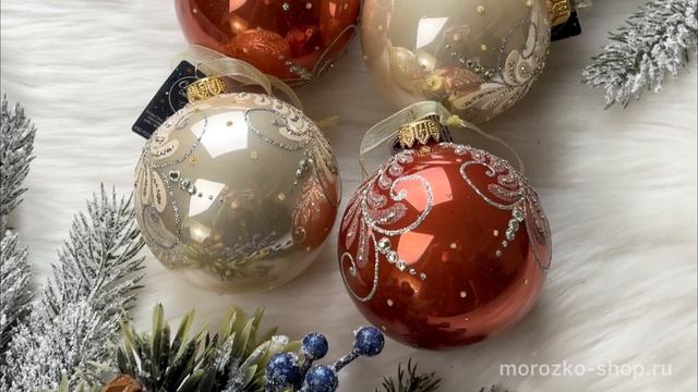 Набор стеклянных елочных шаров ЮВЕЛИРНЫЕ ПЕРЬЯ, 8 см, 6 шт., 050624-набор