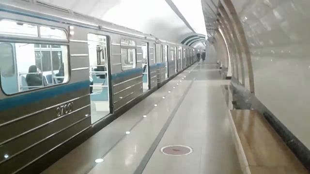 Состав из вагонов 81-717.6/714.6 на станции Марьина Роща, Люблинско-Дмитровская линия, Московский метрополитен, 05.10.2019