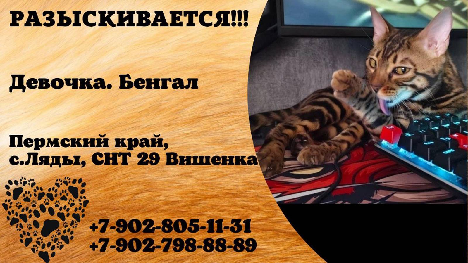 Пропала кошка! Девочка. Бенгал. Пермский край, с.Ляды
