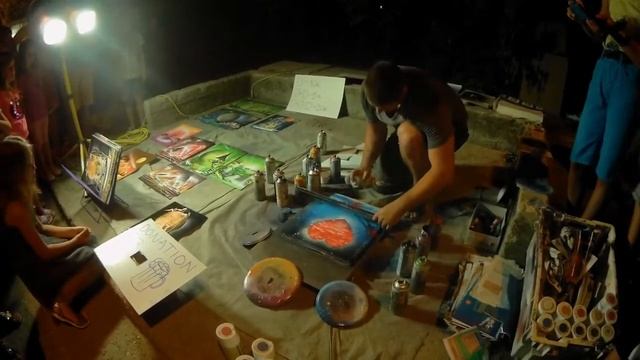 Вечерняя Будва. Уличный художник создает шедевр.