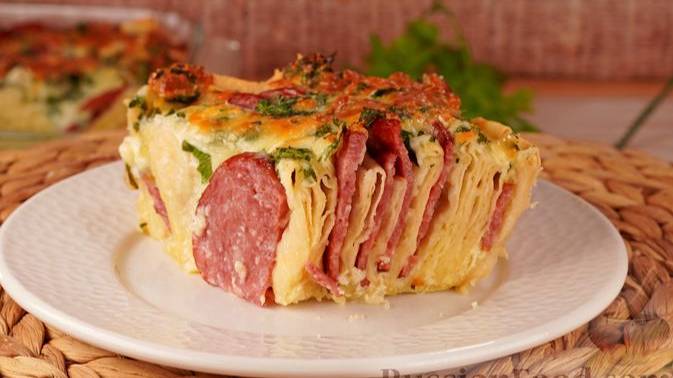 Не то пицца, не то бутерброды. ЗАКУСОЧНЫЙ ПИРОГ ИЗ ЛАВАША С КОЛБАСОЙ И СЫРОМ