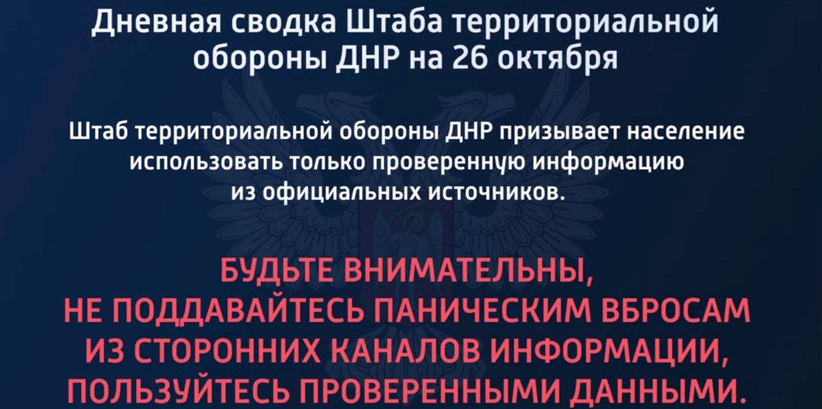 Дневная сводка Штаба территориальной обороны ДНР на 26.10.2022