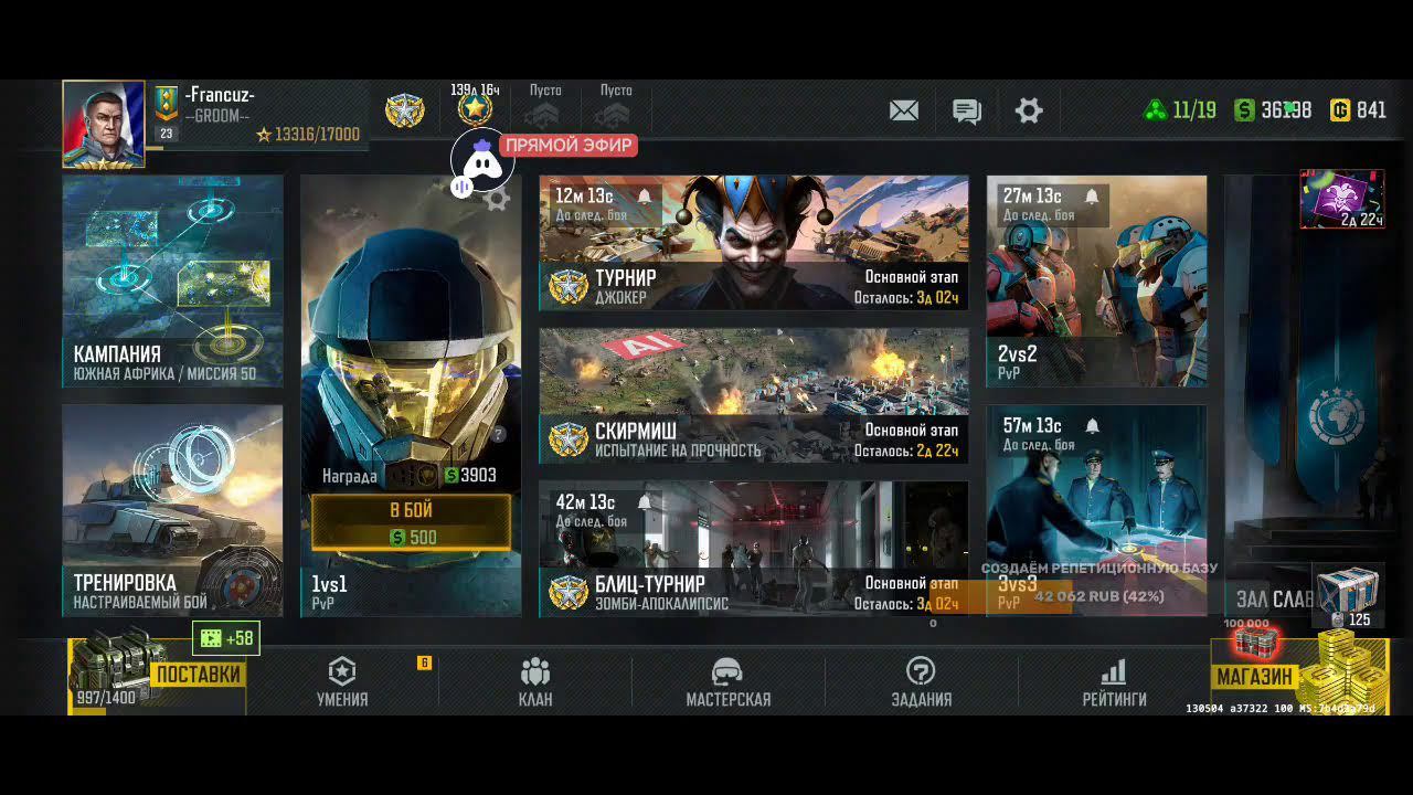 Поддержка автора по ссылке: https://www.donationalerts.com/r/rincks Бланк банк 4375571500040653 телеграм группа для подписчиков https://t.me/art_of_war_3_rincks_sopra Продлить стрим:300 руб Смена фракции:200 руб Тренировка:300 руб 2х2: по совести Покажи кач: миллион рублей Закончить стрим:1000 руб Так же можно заказать челлендж. тоесть дать стримеру задание за определенную сумму. Например: сыграть только авиацией или вообще без неё,ну и так далее. Ссылка на игру: Долго искал настоящую стратежку на телефон, как старкрафт. Наконец нашел Art of War 3! Очень крутая игра! Вот ссылка, качай, тебе понравится: https://redirect.appmetrica.yandex.com/serve/169878688668608468?recruiter_id=1111515909