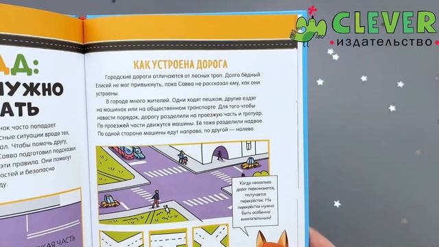 Озорной лисёнок Елисей любит весёлые приключения. Поэтому, даже оказавшись на улице или в транспорте, он не может удержаться от шалостей. Но дорога – не место для баловства, здесь нужно быть внимательным, ведь от этого зависят жизнь и здоровье. Чтобы уберечь друга от беды, ответственный совёнок Савва помогает ему выучить правила дорожного движения и безопасности. Вместе с героями ваш ребёнок узнает: как устроена дорога, зачем нужны дорожные знаки и что они означают, как светофор регулирует дорожное движение, какие бывают пешеходные переходы, почему важно пристёгиваться ремнями безопасности в транспорте. https://www.clever-media.ru/product/pravila-bezopasnosti-v-skazkah-pdd-dlya-malyshey-v-skazkah-6751