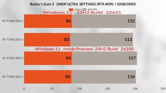 9700x vs 7700x Gaming Test on Win 11 build 22630 vs win 11 build 26100 how it affects gaming on zen5