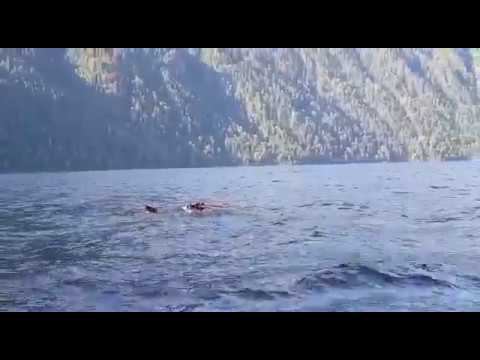 В Алтайском заповеднике отметили группу медведей, переплывающих Телецкое озеро Группу медведей, переплывающих Телецкое озеро в районе впадения речки Юрга отсняли на мобильный телефон жители Яйлю. По сообщению сотрудника Алтайского заповедника Евгения Дмитриевича Веселовского, разместившего видео в своём Инстаграм, группа яйлинцев при возвращении из Артыбаша встретила медвежью семью (медведица и двое медвежат-подростков), переплывающих Телецкое озеро в районе залива Юрга. "Эмиграция" медвежьей семьи произошла по причине поиска новых кормовых угодий или вынужденное спасение от большого медведя-самца, замеченного сотрудниками заповедника, предполагает Евгений Дмитриевич. Старший научный сотрудник, териолог Алтайского заповедника Юрий Николаевич Калинкин, отметил, что в этом году сотрудники заповедника неоднократно отмечали переплывающих Телецкое озеро медведей. Причина, по его мнению, может скрываться в неравномерном распределении урожая шишкек кедрового ореха по побережью Телецкого озера. "Дело в том, что в этом году урожай кедрового ореха только по побережью Телецкого озера и по самым подгольцовьям. Медведи и другие любители кедрового ореха сконцентрировались по берегам, шишку быстро съели и медведи в надежде найти орешные места переплывая озеро, кочуют. Кроме того урожай шишки есть по отдельным урочищам, медведи по своим приметам активно ищут такие места, уходя со своих привычных участков", - комментирует Юрий Калинкин.