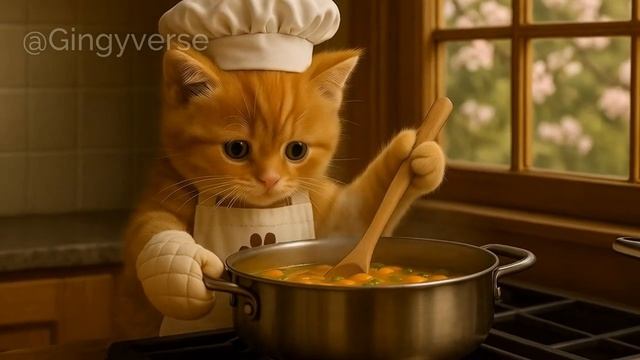 🍵 Tiny Cat Makes Spring Vegetable Soup_ A Cozy Kitchen Day 🥕✨