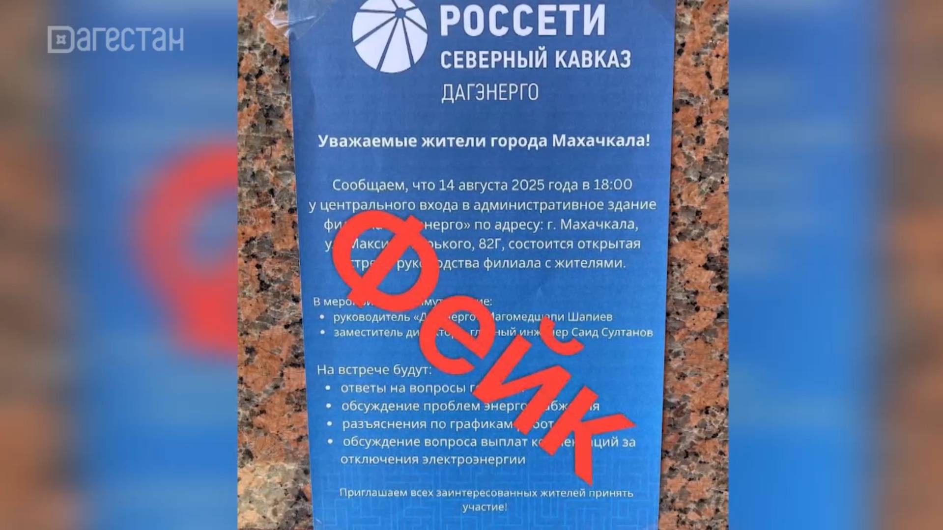 В соцсетях активно распространяется сообщение о предстоящей встрече с руководством филиала «Россети Северный Кавказ» — «Дагэнерго». Однако к реальности это никакого отношения не имеет. Официальный Telegram-канал компании сообщил об отсутствии планов проведения публичных мероприятий перед зданием организации. Людей просят не поддаваться провокациям и доверять только проверенным источникам. Напоминаем, участие в любых несанкционированных акциях влечет административную и уголовную ответственность.