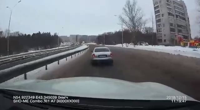 Г. Саров. Водителя Ауди на скользкой дороге, занесло и он едва не улетел в реку. #дтп #занос #зима #скользко