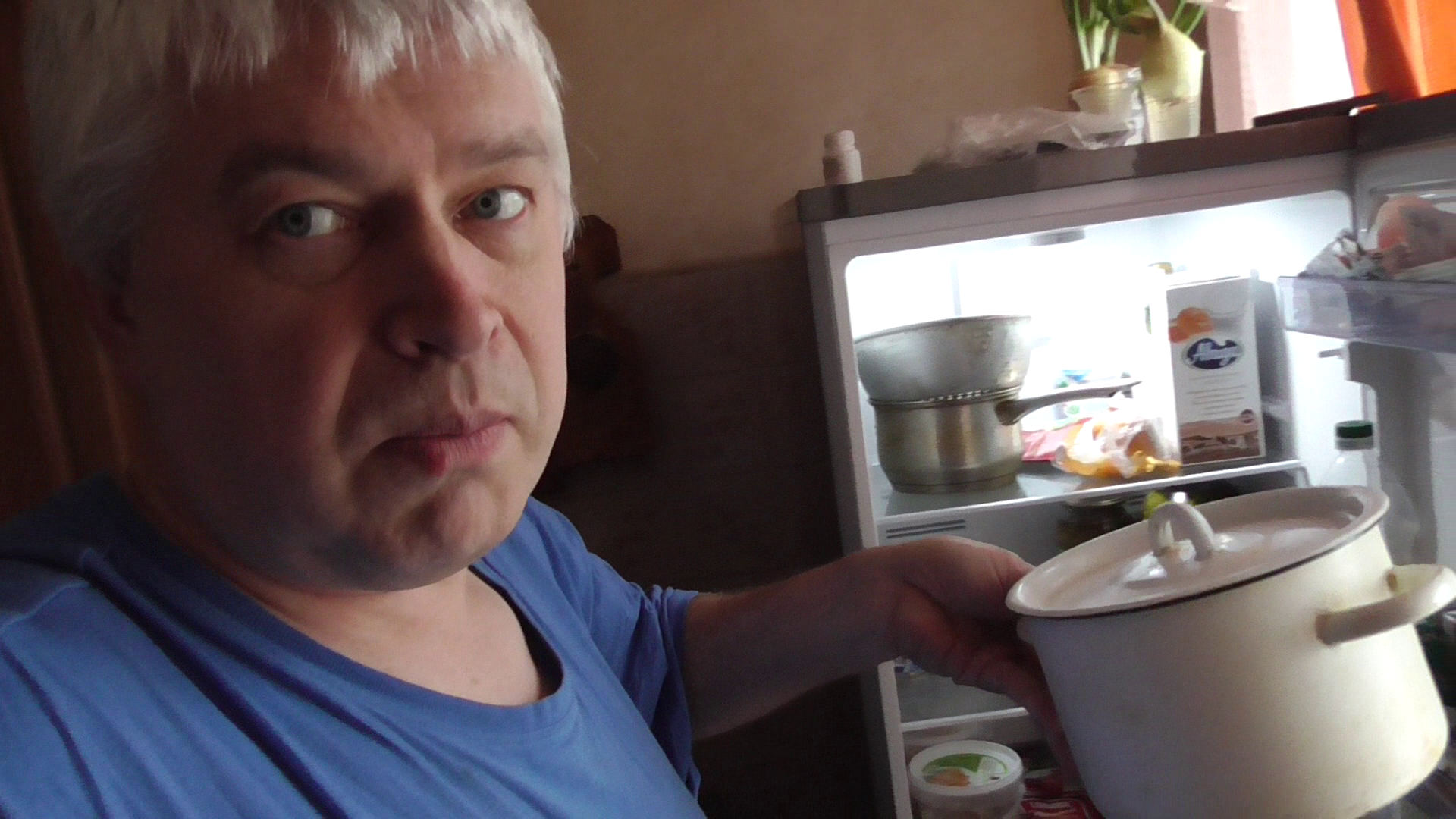 Я из холодильника достал кастрюлю, а в кастрюле борщ