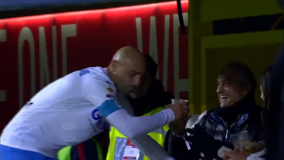 Футболист "Эмполи" Маккароне выпил пива, празднуя гол в ворота в матче серии А