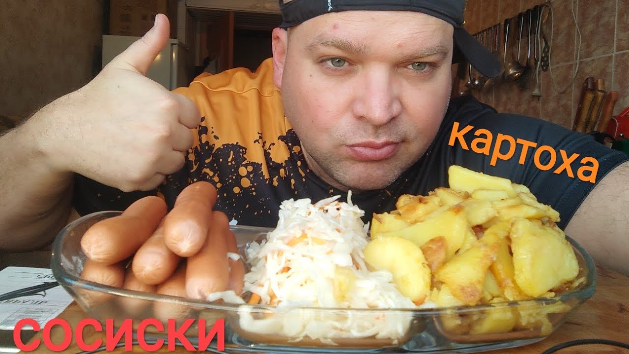 МУКБАНГ жареная картошка и сосиски баварские/ОБЖОР квашеная капуста