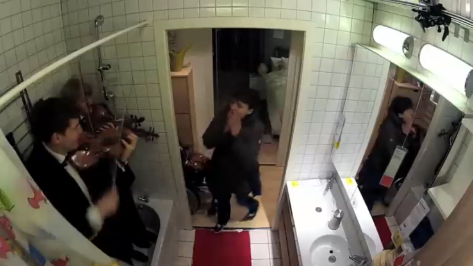 Музыканты, прячутся и играют зловещую и эпичную музыку для прохожих, от неожиданности некоторые шарахаются в ужасе. #прикол #розыгрыш #пранк #музыка