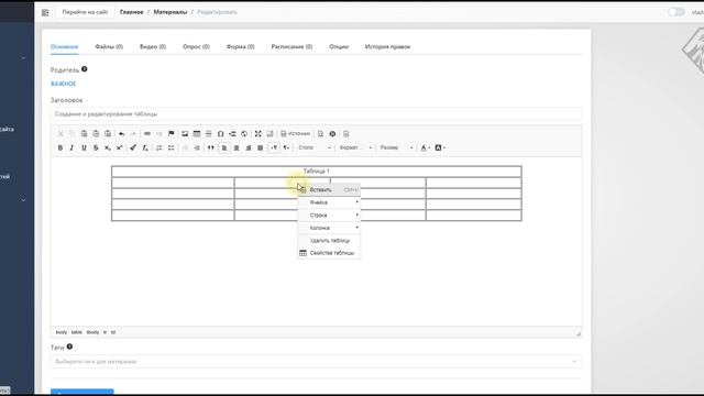 редактирование таблицы