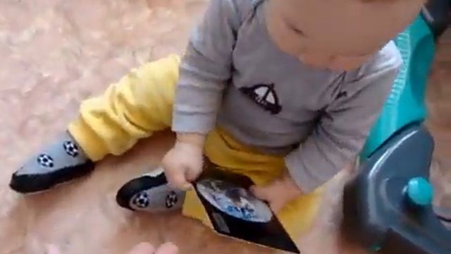 Оскар, 9 мес.играет с карточками «Мир на ладошке»