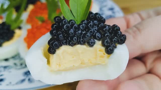 Фаршированные яйца с икрой - как сварить яйца, чтобы они почистились идеально🐣