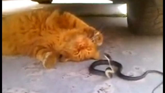 драка кота и змеи