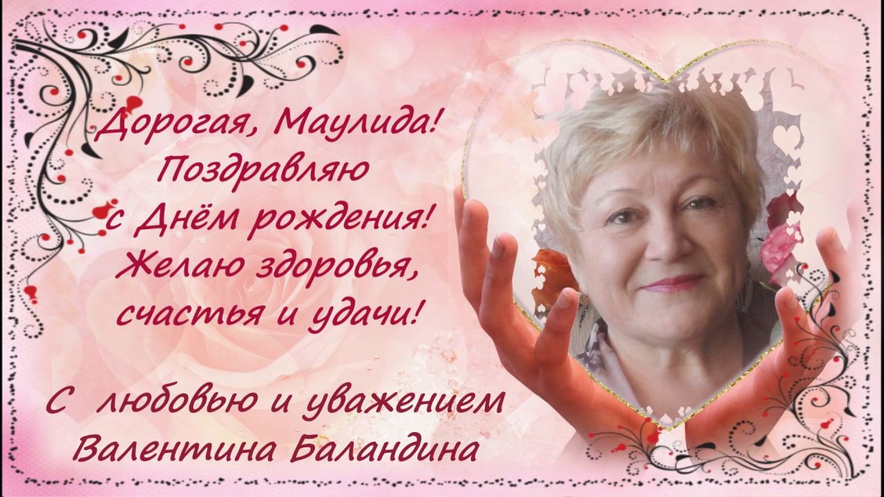 С Днём рождения, Маулида Моя поздравительная музыкальная открытка Делаю на заказ открытки ролики из любых Ваших фото и картинок Мой скайп: tina27055 Я в ОК https://ok.ru/profile/548294294959 В FB https://www.facebook.com/valentina.ba... B VK https://vk.com/valentina707