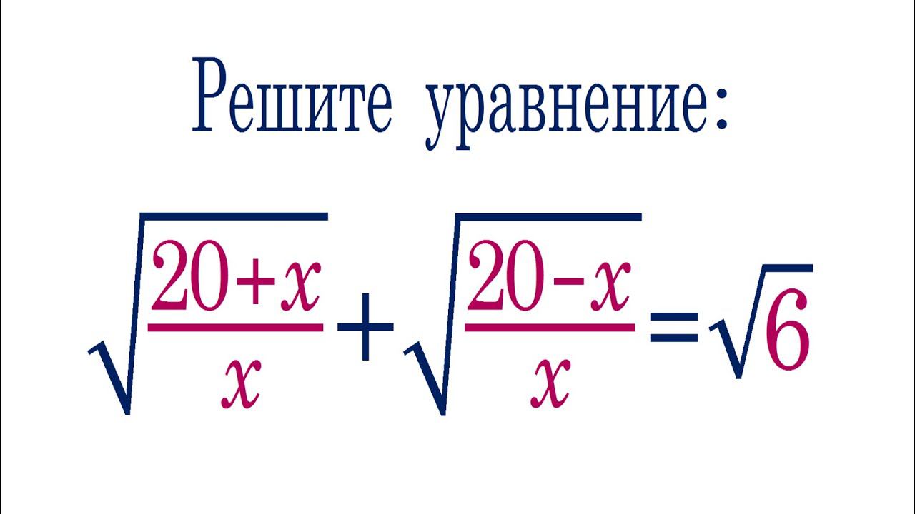 Решите уравнение ➜ √((20+x)/x)+√((20-x)/x)=√6. Двойная подстановка. Telegram: https://t.me/volkov_telegram Мой Дзен: https://zen.yandex.ru/valeryvolkov Группа ВК: https://vk.com/volkovvalery Поддержать: http://donationalerts.ru/r/valeryvolkov Предыдущее видео: https://youtu.be/16bXHQLQzT0 Valery Volkov https://www.youtube.com/valeryvolkov Семейный Дзен: https://zen.yandex.ru/rinaval @arinablog наш семейный канал https://www.youtube.com/channel/UCktJn2SW0NzKaLkdfsYqnrg Instagram: https://www.instagram.com/volkovege/ Twitter: https://twitter.com/volkovege Почта: uroki64@mail.ru