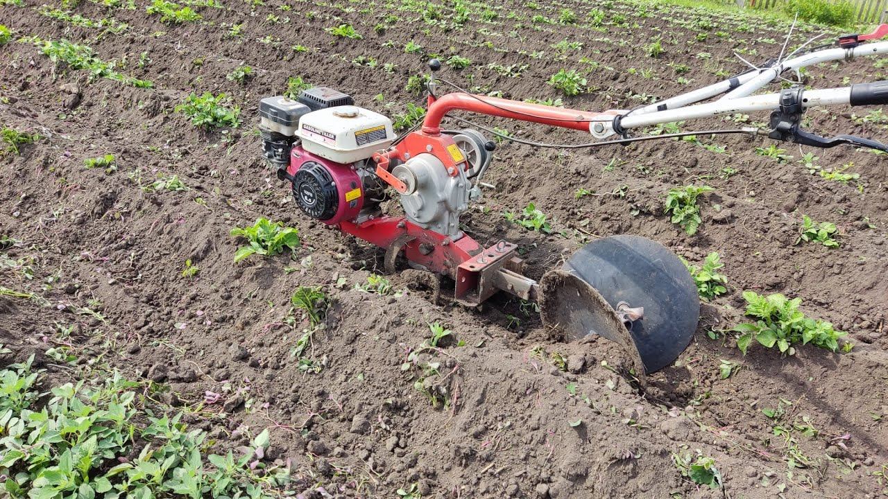 первое окучивание картофеля / The first hilling of potatoes #огород #мотоблок