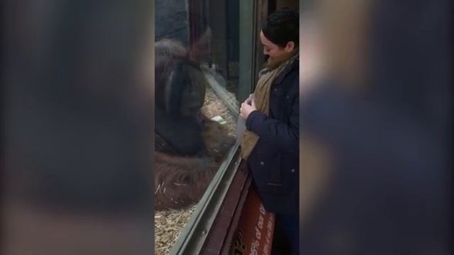 Орангутанг в зоопарке поцеловал беременную девушку в живот