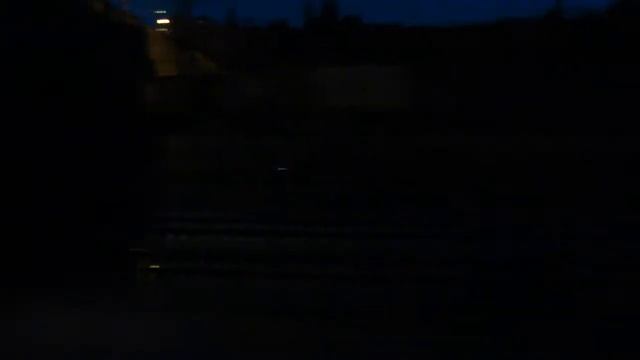 Товарный поезд и электричка поздно вечером.