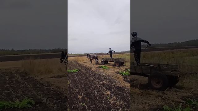 Развозим навоз на лошади