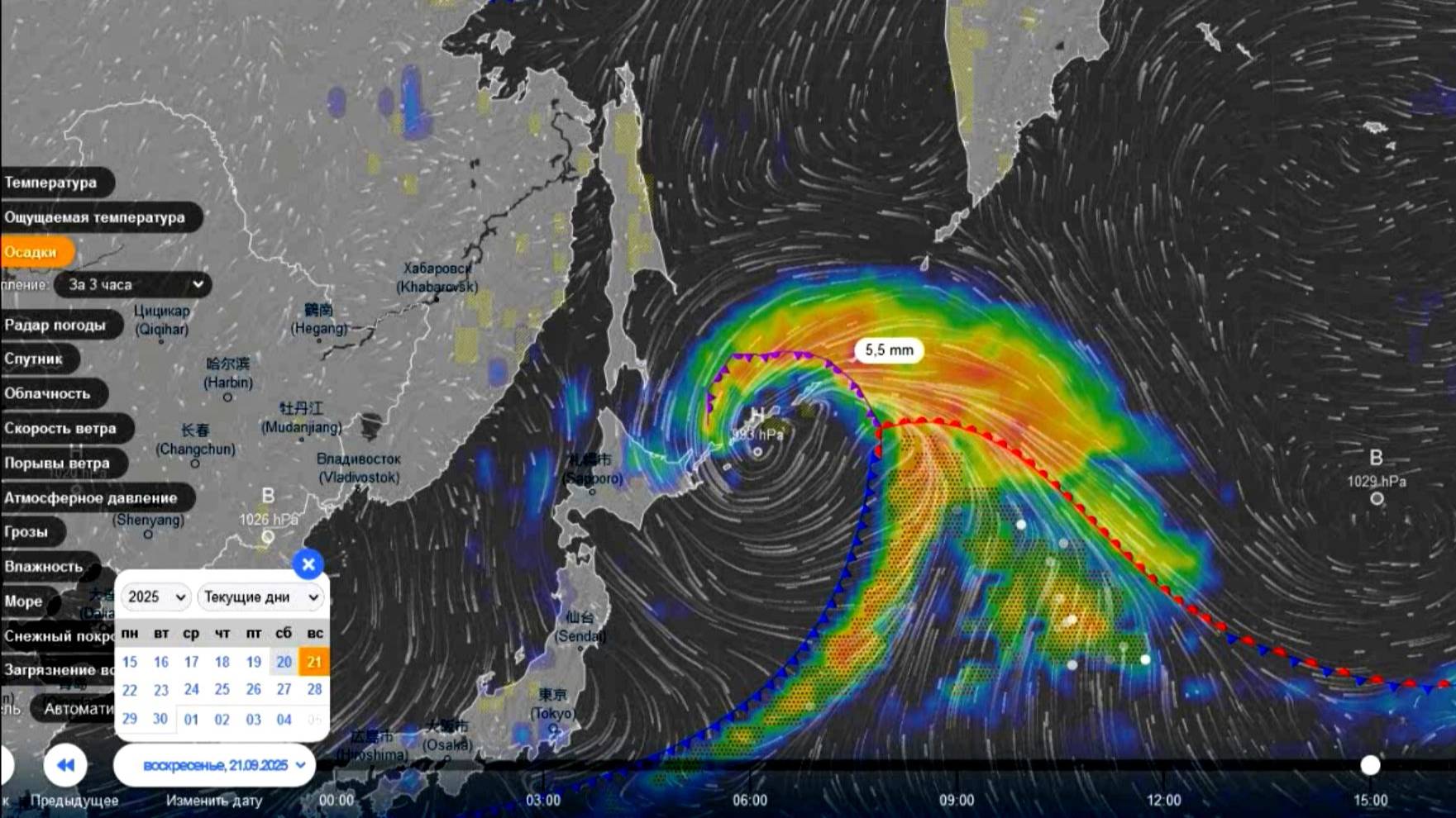 21 сентября циклон из Японии принесет сильные дожди на Курильские острова. Погода на Дальнем Востоке