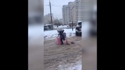 Очевидец запечатлел на видео как девочка- школьница с большой "грузом" идёт домой. #прикол #дети #школьница #россия