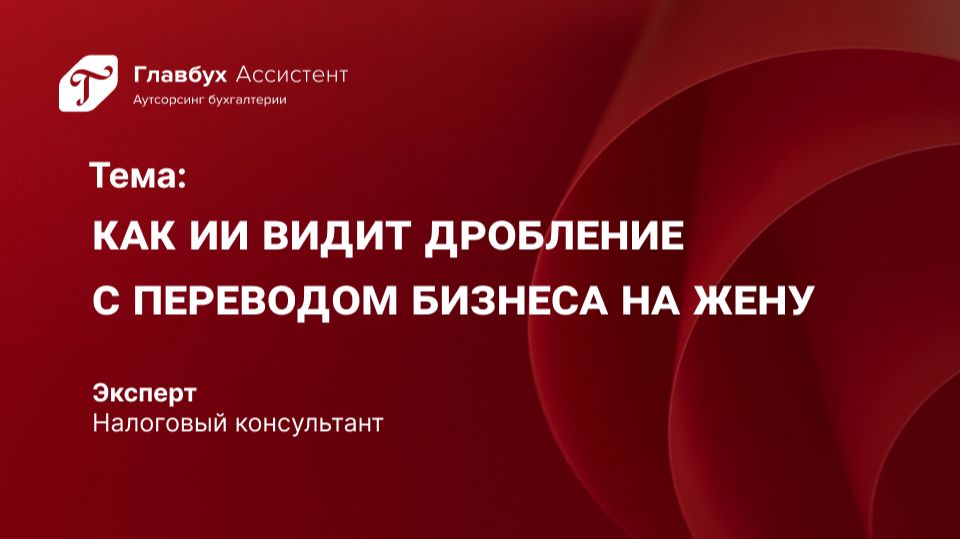Как ИИ видит дробление с переводом бизнеса на жену Наш сайт: https://gba.business.ru/ ВК: https://vk.com/gbaguru Телеграм: https://t.me/businessololo Одноклассники: https://ok.ru/group/57882963738625 Главбух Ассистент - лидер отрасли бухгалтерского аутсорсинга. Входит в группу Актион, входит в ТОП крупнейших компаний в области аутсорсинга учетных функций рейтинга RAEX. С вами будет работать команда из нескольких сертифицированных специалистов: главный бухгалтер, кадровик, бухгалтер по расчету ЗП и юрист. Бухгалтерское обслуживание во всех городах России. Эксперты-лидеры отрасли возьмут на себя бухгалтерский, кадровый и налоговый учет.