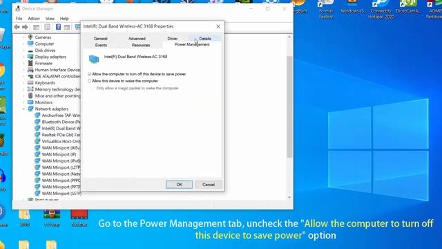 How to Fix WiFi is not connecting After Sleep / Hibernate in Windows 10 This video will show you how to fix WiFi Network disappears after sleep / hibernate in Windows 10. - open Device Manager. - expand Network adapters sections. From the drop-down right-click the adapter which you are using, and click Properties. - go to the Power Management tab, uncheck the "Allow the computer to turn off this device to save power" option. wifi disconnects automatically windows 10 wifi is not connecting in my laptop WiFi Network disconnects After Sleep wifi network automatically disconnects Windows keeps disconnecting from WiFi WiFi disconnects sign in required Sleep mode WiFi will not connect Sleep mode WiFi doesn’t work See more: How to fix wifi is not connecting in Windows 10: How To Fix Devices Not Working After Sleep In Windows 10: https://youtu.be/gqepDhaUCmg