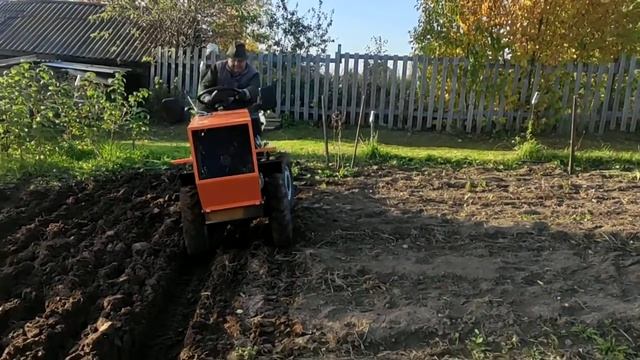 Минитрактор 4х4. вспашка земли осенью.