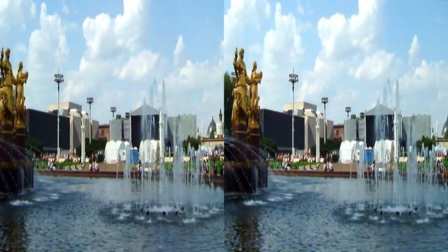 Видео в формате 3d для просмотра в 3d очках (анаглиф, активные Samsung, пассивные LG): Площадь Дружбы Народов, фонтан "Дружба Народов" на ВДНХ (ВВЦ), Москва 20160807