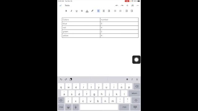 Insert Table - Google Doc - iPad