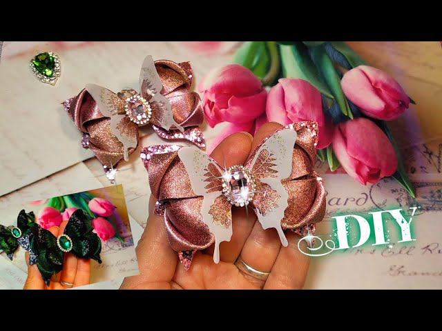 Изумрудный или Розовый ,Канзаши для новичков 2 лепестка и красивые стразы + Эко-кожа bow,бантик.