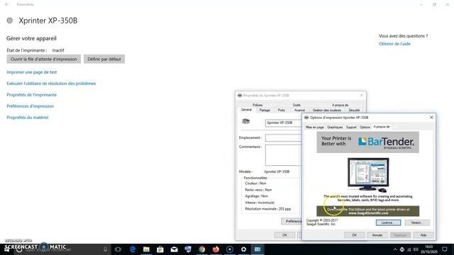 Installation imprimante code à barre XPrinter 350B