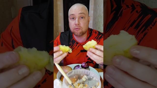 Мукбанг. Скумбрия с картошкой, лучком и квашеной капустой. Еда на камеру, мукбанг Россия.
