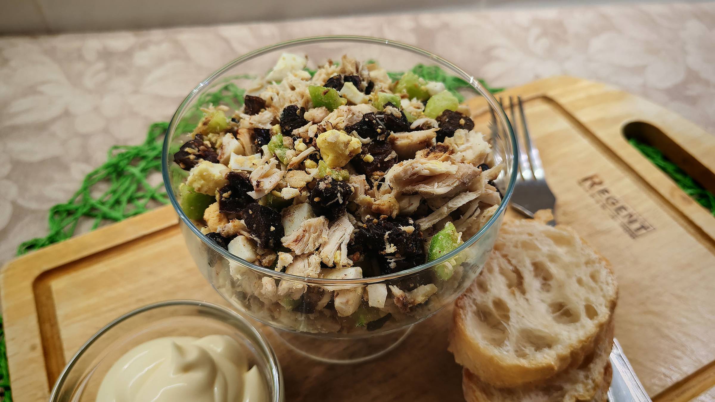 Салат-коктейль с курицей. Очень простой рецепт салата с курицей и черносливом.
