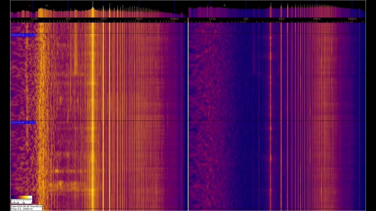 This video shows 2 spectra of signals recorded on a PC. The signal is taken from the inductive sensors presented at the beginning and end of the video. But the left sensor is connected to ground. Interesting signals at frequencies of 1-3 Hz, their changeable shape differs markedly from straight lines of 50 Hz and overlying harmonics. As well as other signals ~10, ~15, ~25, ~35 Hz and variable activity at fractions of a hertz. It is known from open sources that the range from 30 to 300 Hz is used for communication with strategic submarines. And the range is from 3 to 30 Hz for communication with underground objects and experimental studies. More frequencies up to 10 Hz belong to the geomagnetic background of the Earth... О ПРОИСХОЖДЕНИИ ЧАСТОТНОЙ МОДУЛЯЦИИ СЕРПЕНТИННОЙ ЭМИССИИ https://youtu.be/bwWHggY1IVU?si=xAX1diRKI9MxQJ88&t=1740 Previous monitoring is in playlists: EMF monitor https://youtube.com/playlist?list=PLiRg2YCbXcwn41BHqADKVBep_TgVq6XUN Очень Низкая Частота ~ Very Low Frequency https://youtube.com/playlist?list=PLiRg2YCbXcwnp5DxM4PnSs7k_Rnypaqek SIGNALS IN THE GROUND https://youtube.com/playlist?list=PLiRg2YCbXcwl6f3Bf5arHbGSOCNE5U71O поддержать канал: 8-999-654-93-44