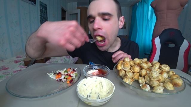 МУКБАНГ НАРЕЗКИ ЛУЧШЕЕ - ПЕЛЬМЕНИ ЖАРЕНЫЕ / СОУС / САЛАТ / EATING / Mukbang АСМР 07. 02. 2024