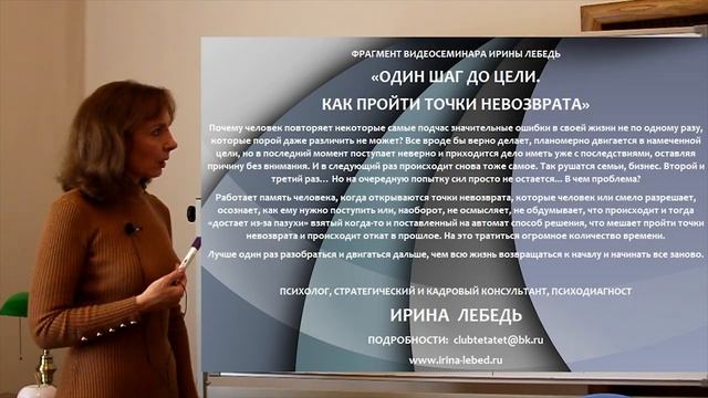 13.Невежество не дает право выбора - фрагмент видеосеминара Ирины Лебедь