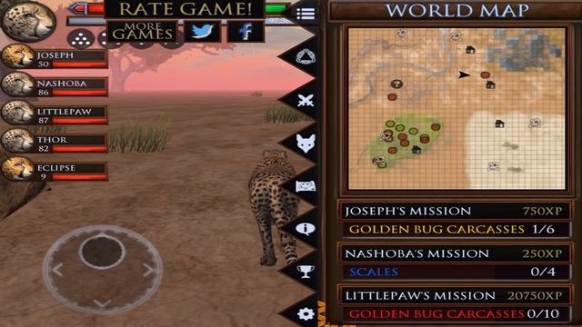 ?Played by 13 year old Joseph?? Enter into the wild savanna and live the life of a Cheetah! Explore a vast grassy plain filled with ferocious animals of all shapes and sizes. Raise a family, hunt down food, and battle for your life against fierce predators like hyenas, crocodiles, and lions! Download the Cheetah Simulator today while it's 50% OFF for a very limited time! Game Features + REALISTIC SIMULATOR - You'll need to maintain your health, hunger, thirst and energy if you're going to survive in the hostile plains of the African savanna! + BLAZING SPEED - Race your way through the vast world at blurring speeds that will leave your enemies in the dust! + EPIC BATTLES - Use your razor sharp claws, swift speed, and deadly pounce to hunt down tasty snacks and fight dangerous exotic animals like elephants and lions! + START A CHEETAH PACK - Find a mate to bond with and raise your very own family of cheetahs! Watch your cubs grow in size and strength as they help you battle your enemies! + LEVEL UP YOUR CHEETAH - Gain experience by defeating and devouring enemies and level up your cheetahs to increase their health, attack damage, and even unlock new abilities! + CHEETAH SURVIVAL GUIDE - Look to your handy survival guide for information on enemy wildlife, a map of the savanna, cheetah customizations, and much more! + HUGE 3D ENVIRONMENT - Your cheetah is free to roam a massive open-world environment that is more the double the size of the previous simulators! + NEW TOUCH-BASED CONTROLS - Brand new intuitive controls let you navigate your animal like never before! Pinch to zoom and play from your cheetah's perspective or get a bird's eye view of the action! + 20 UNIQUE AFRICAN SPECIES - Behold the largest collection of animals ever put into a single simulator! Hunt down elephants, hippopotamus, wild boars, gazelle, zebras, pythons, camels, bats, rhinoceros, and many more! + HD GRAPHICS - Stunning High Definition graphics will transport you to a remote grassland ecosystem and surround you with nature's beauty! New Graphics Quality options allow you to customize the game to look amazing and perform great on any device! + OPTIONAL BLOOD EFFECTS - Looking for more realistic action? If you are of age or have your parents permission, turn on the blood effects for some added combat ferocity! + GLUTEN-FREE PROMISE - With all of our games you will always get the full game with no ads or additional purchases! Download the Cheetah Simulator to experience the adrenaline pumping speed of the world’s fastest animal! If you liked living as a Cheetah then you'll love our other animal simulators! Download our Eagle Simulator and soar through the skies, or check out the World of Dragons: Dragon Simulator and raid castles and battle mythical bosses, or rule over the animal kingdom with the Safari Simulator: Lion! Follow us on Facebook for more awesome animal games and simulators! facebook.com/glutenfreegames